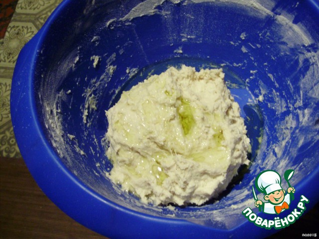 Теперь добавляем оливковое масло и еще раз вымешиваем.