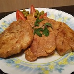 Мясное филе (в данном случае телятина) разрезаем на порционные куски. Промываем и обсушиваем салфеткой. Отбивать мясо не надо, от этого оно потеряет сочность.