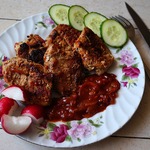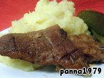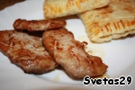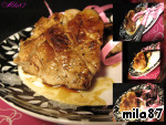 В этот раз я хочу поделиться скорей даже не рецептом, а способом приготовления/украшения мяса. Благодаря маленьким хитростям, создаeтся впечатление, что мясные кусочки приготовлены на гриле. Мясо доходит до готовности раза в полтора быстрее и не успевает при этом пригореть сверху. Подобным образом можно готовить толстые куски на сковороде без крышки, они равномерно прожарятся, не став "резиновыми". А на гарнир можно приготовить всe, что захотите.