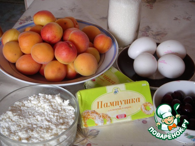Ингредиенты для «Творожно-абрикосовый пирог с черешней»: