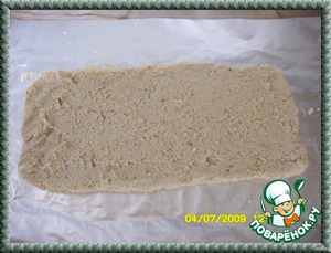 Далее,на фольгу разложить равномерно массу.