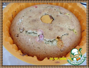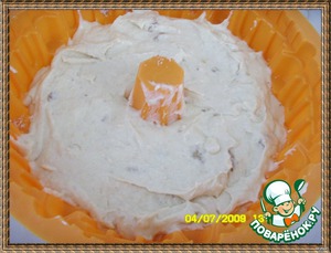 Вылить тесто в круглую разъёмную форму диаметром 23 см - тогда будет пирог, или в моем случае - в кексовую форму.
