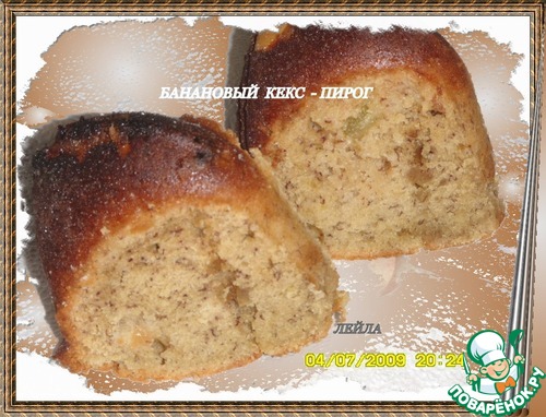 Привлек рецепт тем, что обычно переспелые бананы не знаем куда девать. Благодаря Леночке -elaizik, спасибо ей за чудный рецепт, есть такой чудный, вкусный, мягкий, с ароматом банана кекс-пирог.