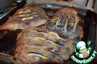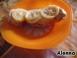 Сверху положила кружочки лимона - после запекания они становятся желеобразными и безобразно внусными ; ) Ну, еще и веточки зелени.