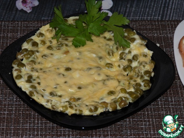 Яичница с зеленым горошком