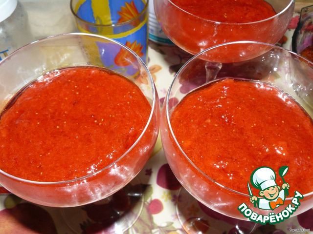 Подготовленное клубничное пюре выкладываем в креманки и даем полностью остыть.