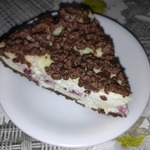 Белое тесто посыпаем манкой, выкладываем вишни, сверху трем черное тесто, на него выкладываем творожную массу, на творог - сбитые белки с сахаром и киселем, на белковою массу сверху трем белое тесто. Ставим в духовку на 1 час при температуре 180 град.