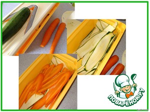 Цуккини и морковь шинкуем на терке ШИРОКИМИ ПОЛОСАМИ очень тонко