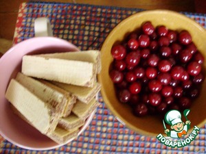 • Вафли измельчаем в блендере, или кладем в кулек и мнем до получения мелких крошек, добавляем отжатые вишни и перемешиваем в однородное тесто(Я все делала в блендере).
