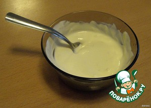 Приготовить соус. Смешать сметану с майонезом, добавить измельченный чеснок.