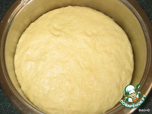 подсыпая просеянную муку замесить эластичное тесто, хорошо его вымесить, убрать в смазанную маслом миску, накрыть, оставить в тепле до подхода на 1 час.