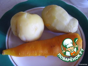 картофель и морковь отварить до готовности, очистить