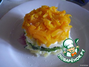 красный перец натереть на крупной терке и уложить сверху