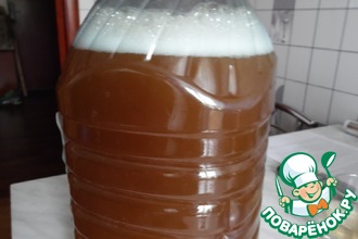 Мы вскипятим снова, на этот раз 7 литров, воды, добавим в нее немного сахар (пол стакана), добавим еще граммов 300 высушенного бородинского хлеба. Дадим остыть до теплого состояния, сусло перекладываем в чуть теплую воду и добавим еще 40 граммов дрожжей (обычно я беру брикетик дрожжей 100 граммов, как раз хватает на 2 захода). Снова обвязываем кастрюлю тканью и оставляем уже на сутки. А остальное по рецептуре.