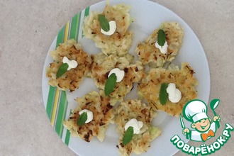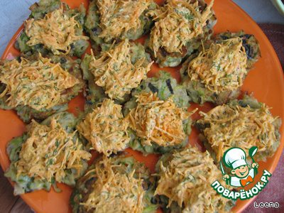 Выкладываем морковную подушечку на кабачковые оладьи.