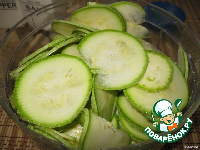 Кабачки тоже нарезаем колечками. Тоже солим.