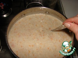 Далее вскипятить молоко и добавить в получившееся пюре, туда же нарезанный плавленный сырок и грибную приправу. Варить 10 минут.