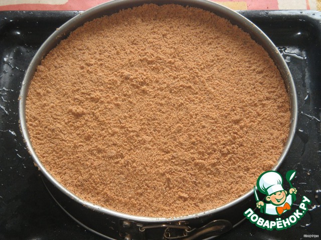 Половину теста выложить на дно формы (рассыпать по форме)...
