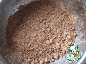 2. Крошка не запеклась, осталась как была в первозданном виде и на вкус горьковато, пришлось с готового пирога соскребать, добавлять масло и сахар, и опять в духовку на 10 мин. Я какао чистое добавляла, может нужно с добавками. Разрыхлитель там не нужен.