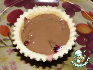 На шоколад выкладываем ягоды. Ставим в холодильник минут на 20.