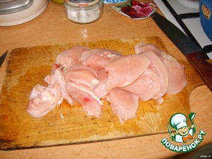 1. Режем индейку пластинами толщиной ~ 0.5 см.
