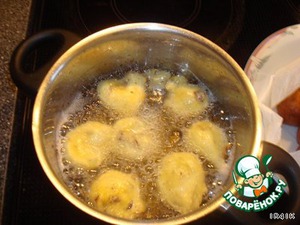 В кастрюле разогреть растительное масло, столовой ложкой опускать в него тесто. Жарить до золотисто- коричневого цвета.