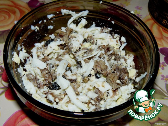 Яйца натираем на крупной терке, шпроты разминаем вилкой и все смешиваем. Кстати, можно добавить зеленый лучок.