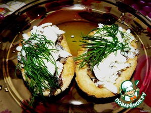 Сверху немного майонеза и укропчик. Все! Наш завтрак готов! Всем приятного аппетита!