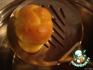 Готовые булочки сразу опускаем в остывший сироп и укладываем на блюдо с салфеткой. Наши булочки готовы. Приятного аппетита!