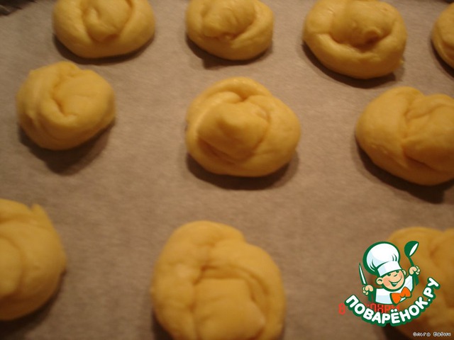 Вот в таком виде укладываем на противень, предварительно застеленный бумагой для выпечки.