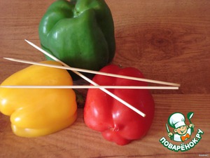 Для этой закуски нам нужен сладкий перец трех цветов и деревянные палочки.