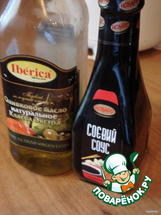 Готовим соус для перца. Для этого смешиваем оливковое масло,соевый соус