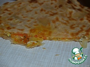 Тесто делим на шарики, раскатываем тонюсенько. Укладываем начинку (не много), хорошо защипываем края. Жарим на среднем огне, на хорошо раскаленной сковороде, с добавлением очень малого количества растительного масла до румяности.