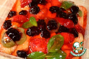 Несколь ложек налить на печенье и ягоды,немного остудить и залить оставшимся желе.