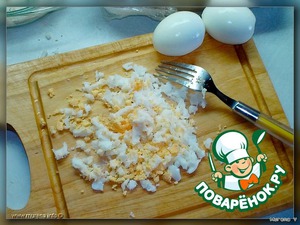 Рыбу отвариваем и разминаем вилкой, так же разминаем вилкой яйца, отвариваем рис. Рыбу, 2 яйца и часть риса перемешиваем. Соль и специи по вкусу. Это начинка для рыбных пирожков. -