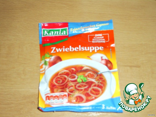 Берем любой суп-пюре в пакетике, светлый, в моем случае луковый...