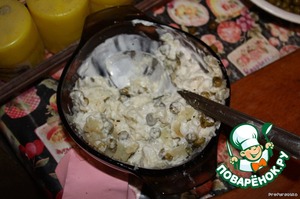 • Я подавала с оставшимся горошком, свежим огурцом, и полила сметанкой