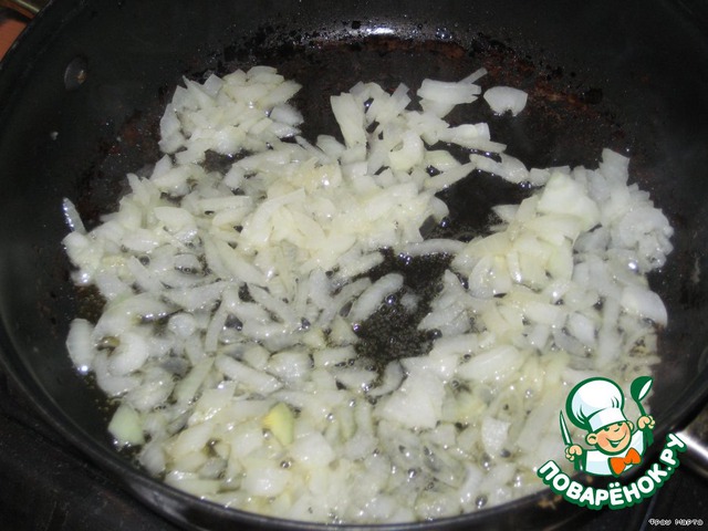На сливочном масле обжарить мелко нарезанный лук до слегка золотистого цвета.