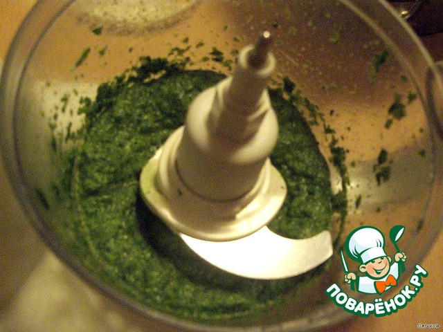 В одну часть добавляем измельченный шпинат и перемешиваем.
