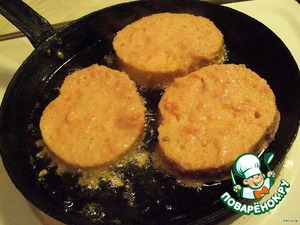 Обмакиваем ломтики булки в льезон. 3шт.со шпинатом, 3 шт. с помидором. Обжариваем на сковородке.