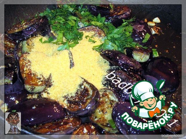 готовим до готовности баклажан, это еще около 4-5 минут, добавляем панировочные сухари,