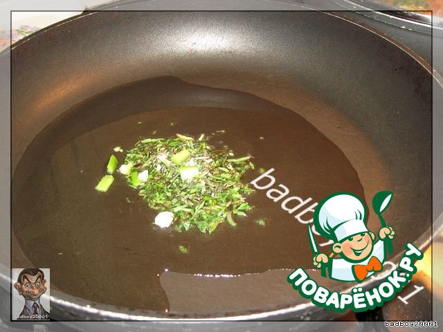 и пока масло холодное кладем травки, нагреваем -
