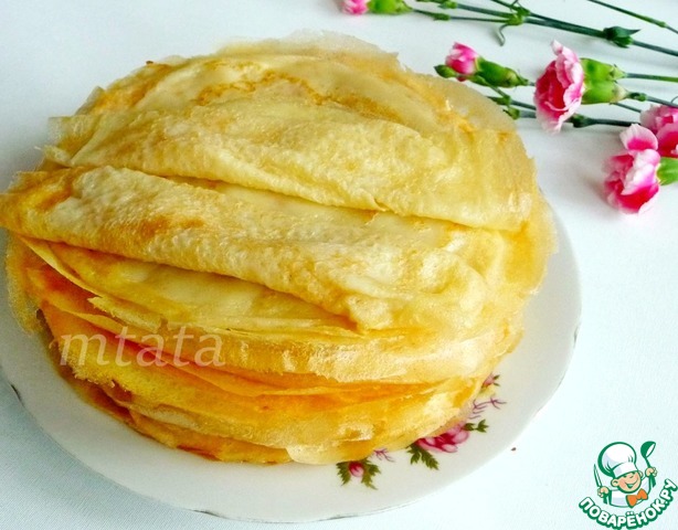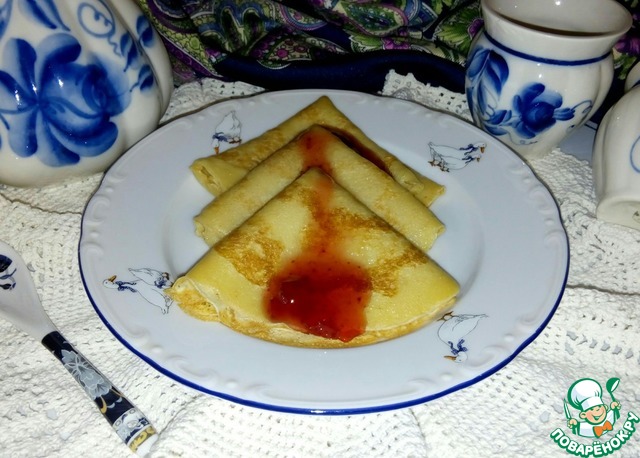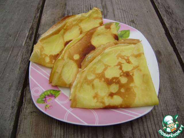 Тесто хорошо тем, что оно достаточно жидкое и выпечь толстый блин (как я совсем не люблю) просто не получится.