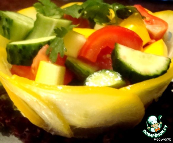 Достаем кабачковый салатник, освобождаем от пищевой пленки.