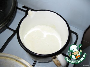 Готовим соус к мясу: сливки ставим на огонь и доводим до кипения