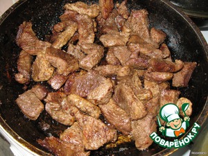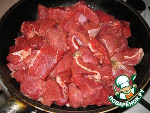 Поджариваем мясо на растительном масле с двух сторон до слегка румяной корочки.