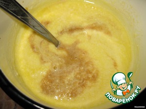 Как только сыр раствориться, снимаем смесь с огня и добавляем горчицу