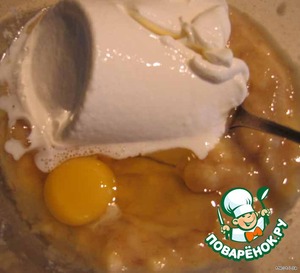Добавляем в банановое пюре сметану и яйцо, хорошенько перемешиваем