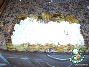 Жарим баклажан в масле. Баклажан впитывает очень много масла, поэтому, чтобы рулет не получился очень жирным, я использовала сковородку гриль и старалась использовать как меньше масла. Так или иначе, лучше оставить некоторое время жареные баклажаны на бумаге, чтобы лишнее масло стекло.