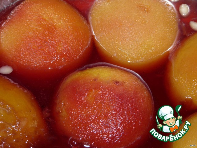 В конце варки очистить персики от кожицы. Оставить остывать в сиропе.
